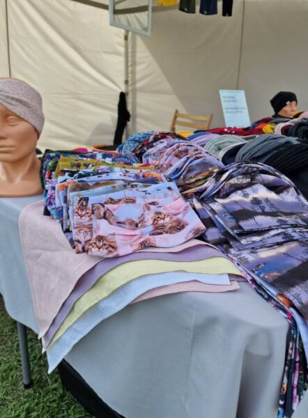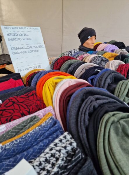 Käsitööna valminud mütsid, kaelused, peapaelad.